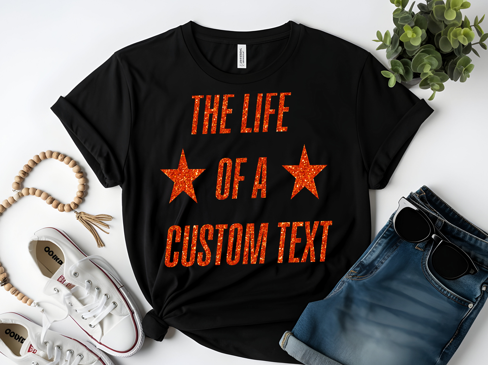 Custom The Life of A Glitter Shirt| Personalized Glitter Text Star Tee | Perfect Gift for Mom, Teacher, Nurse